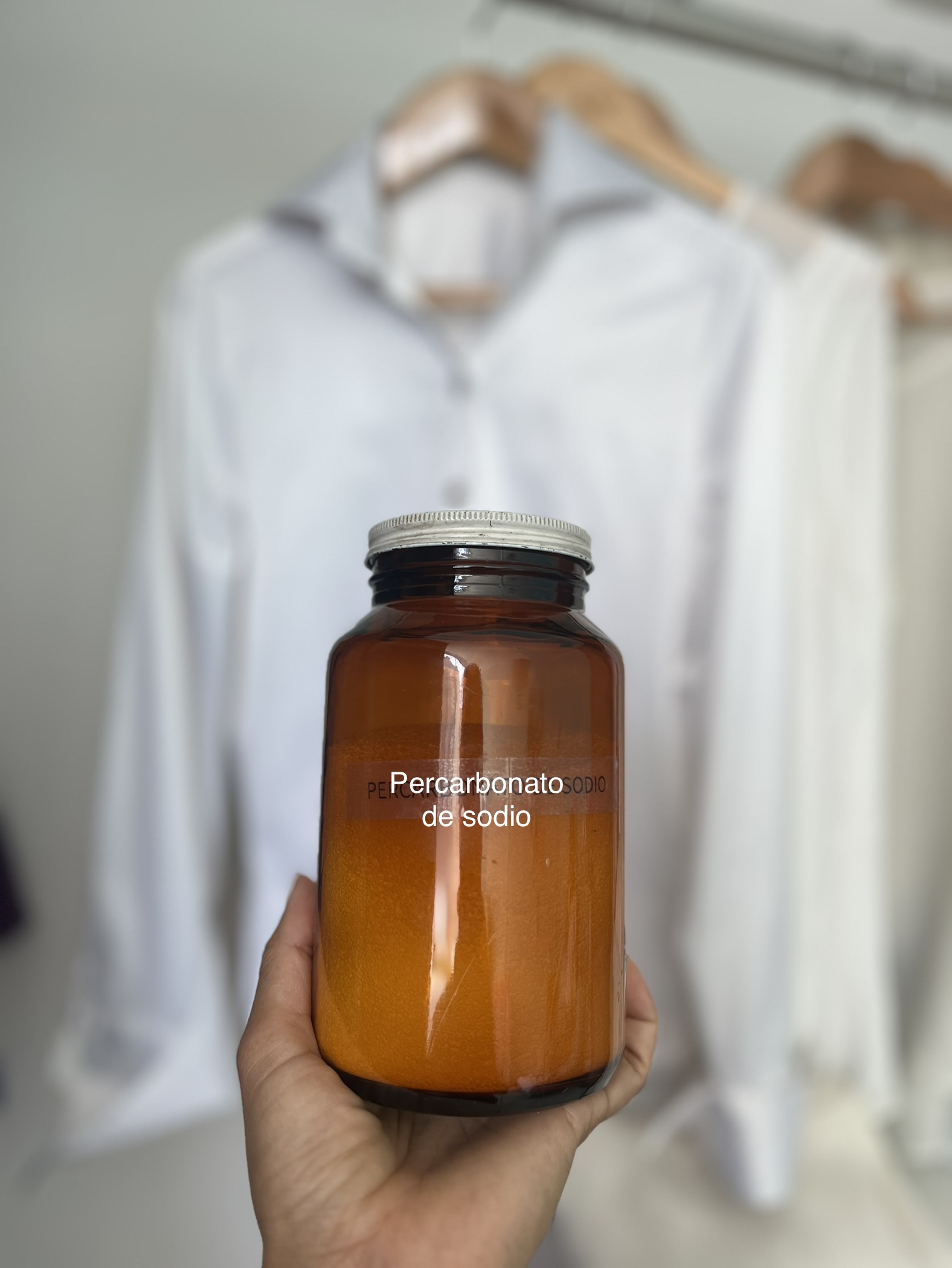 1. Como blanqueador usa 3 cucharas por cada 5Kg de ropa blanca como toallas, sábanas, etc. Plus: no necesitas un suavizante porque el percarbonato de sodio tiene ese efecto.